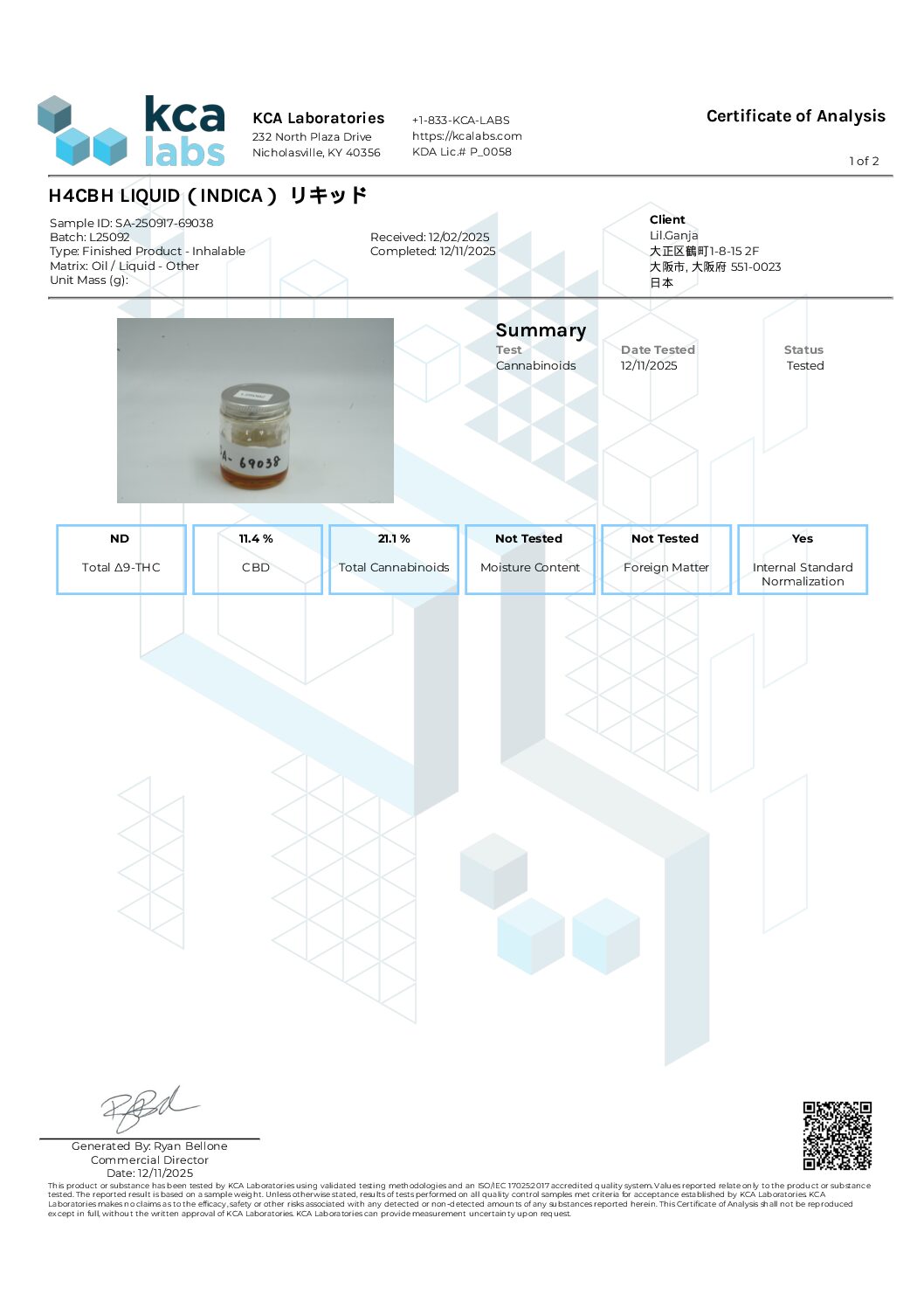 LIQUID, 上級者向け【INDICA】H4CBH LIQUID